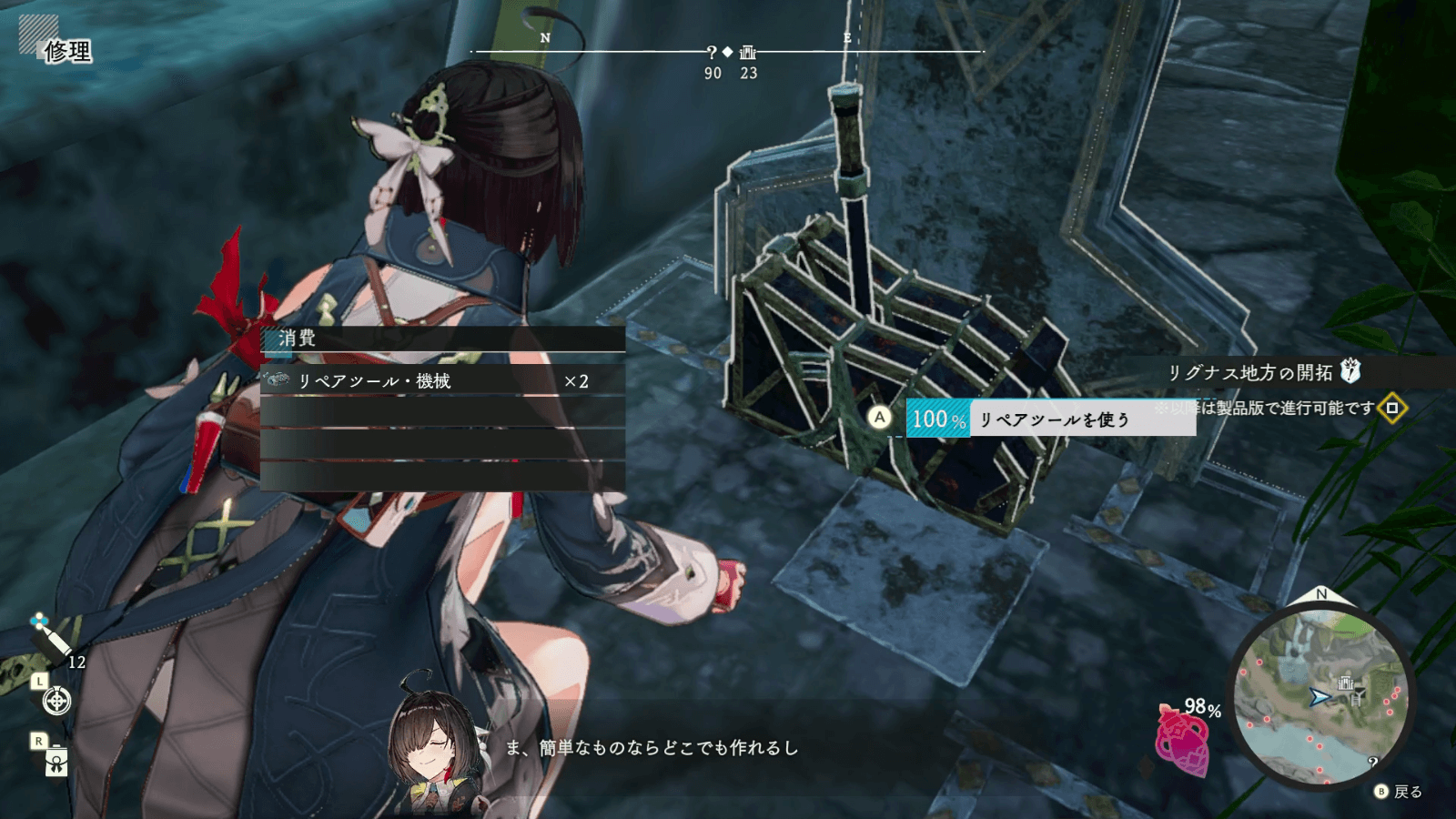 必要な道具 リペアツール・機械×2カロルの館に入るには、リペアツール機械が2つ必要になる。ストーリーを進めて灯台に入れるようになるとリペアツールが解放されるため、まだ作れない場合はストーリーを進めてから訪れよう。