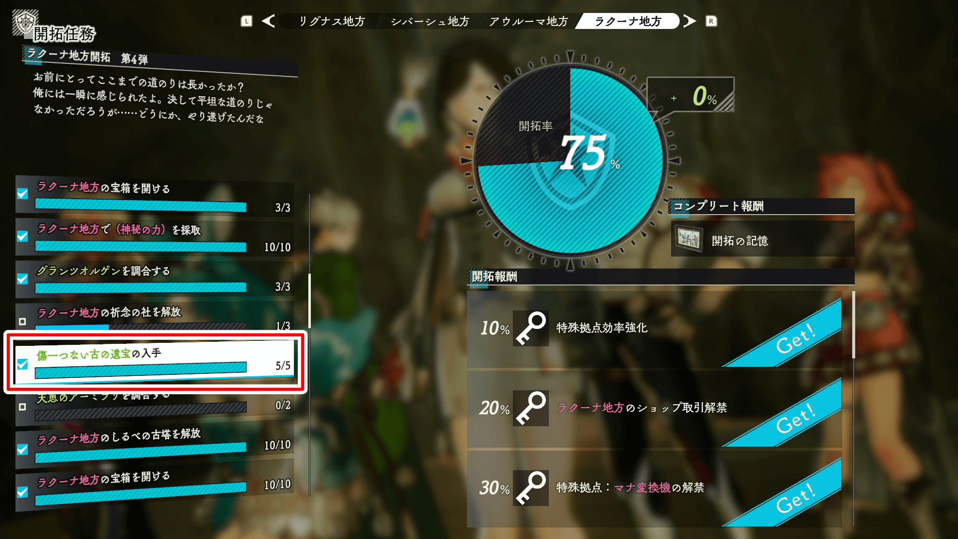 遺構にある遺宝は、入手すれば各地の開拓率が上がる。開拓率100%を目指すなら、数カ所は攻略しよう。