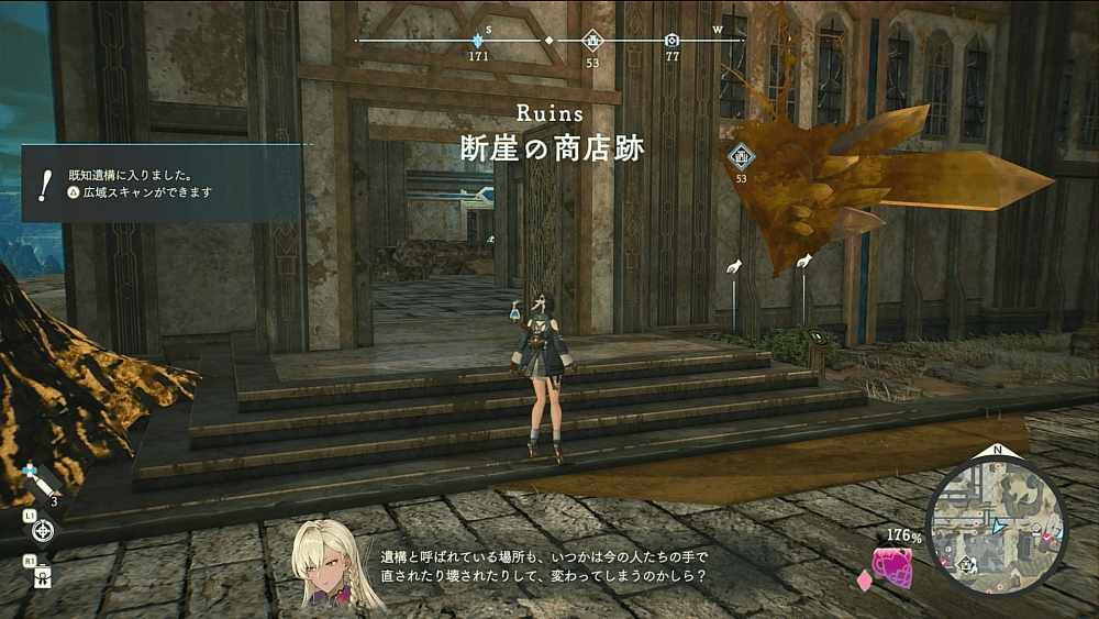 広域スキャンを解放したら、ミニマップを頼りに遺宝と宝箱を回収しよう。広域スキャンすると遺構にある遺宝と宝箱の数、ミニマップには位置が表示されるため、すべて回収すると遺構クリアとなる。