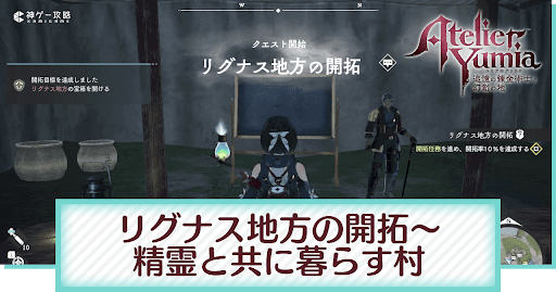 ユミアのアトリエの「リグナス地方の開拓〜精霊と共に暮らす村2」の攻略について紹介。各クエストの進め方や同時にこなすべき寄り道要素、クエストによる分岐点、作成するべき装備について解説。ユミアのアトリエのストーリーを進める際の参考にどうぞ。