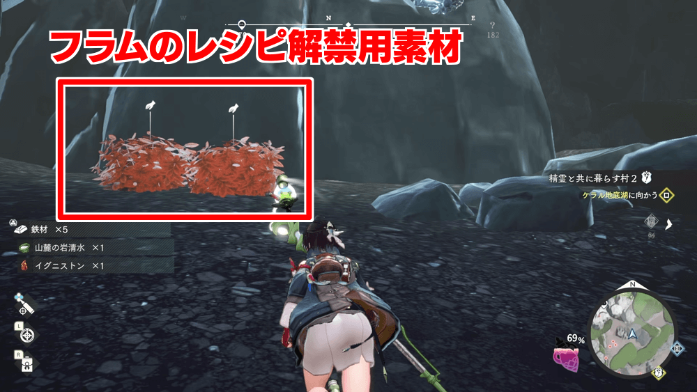 | 2 | アトリエ東にあるケラル地底湖へ向かう ※途中でパンクラッカを拾っておく |