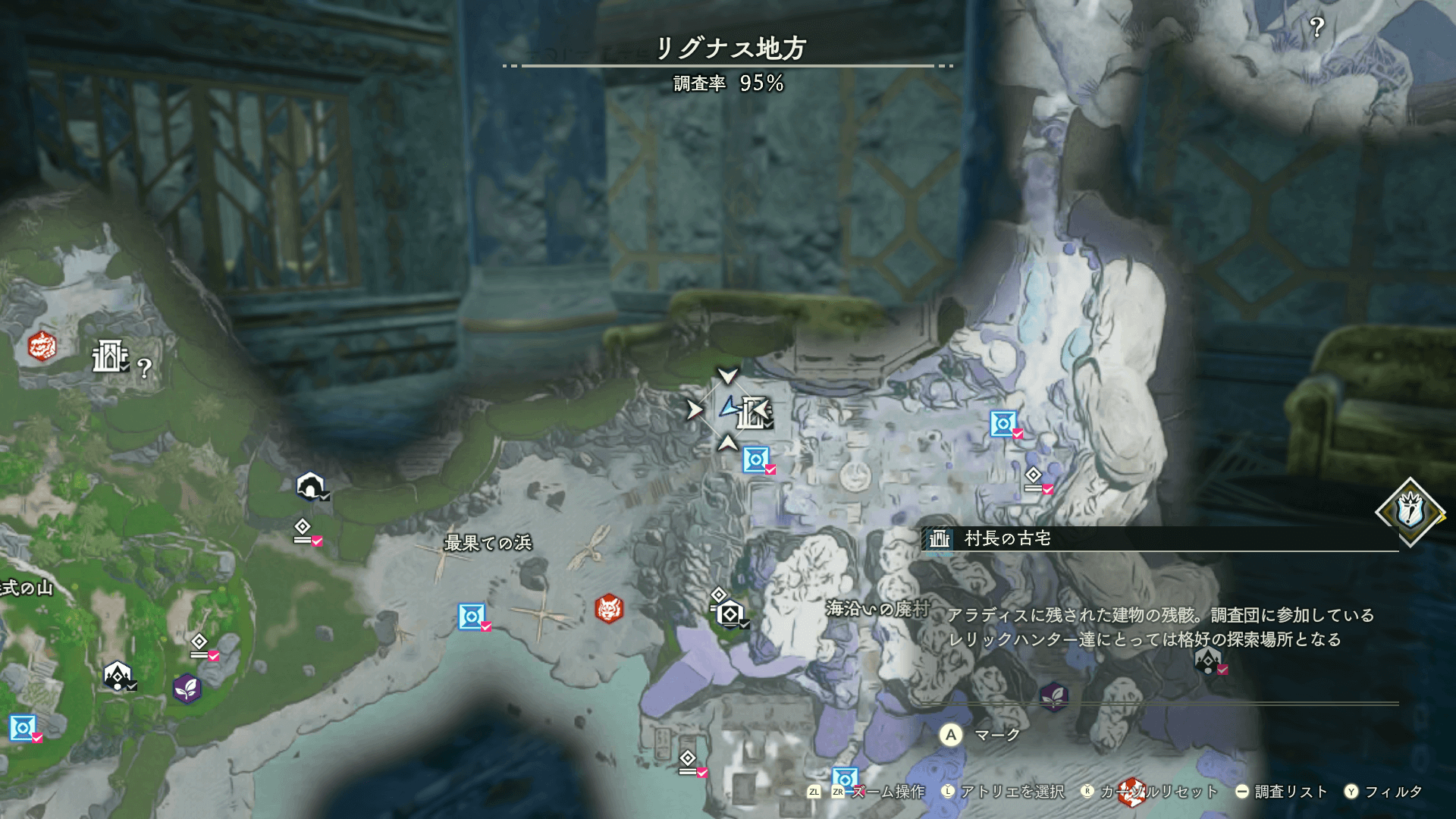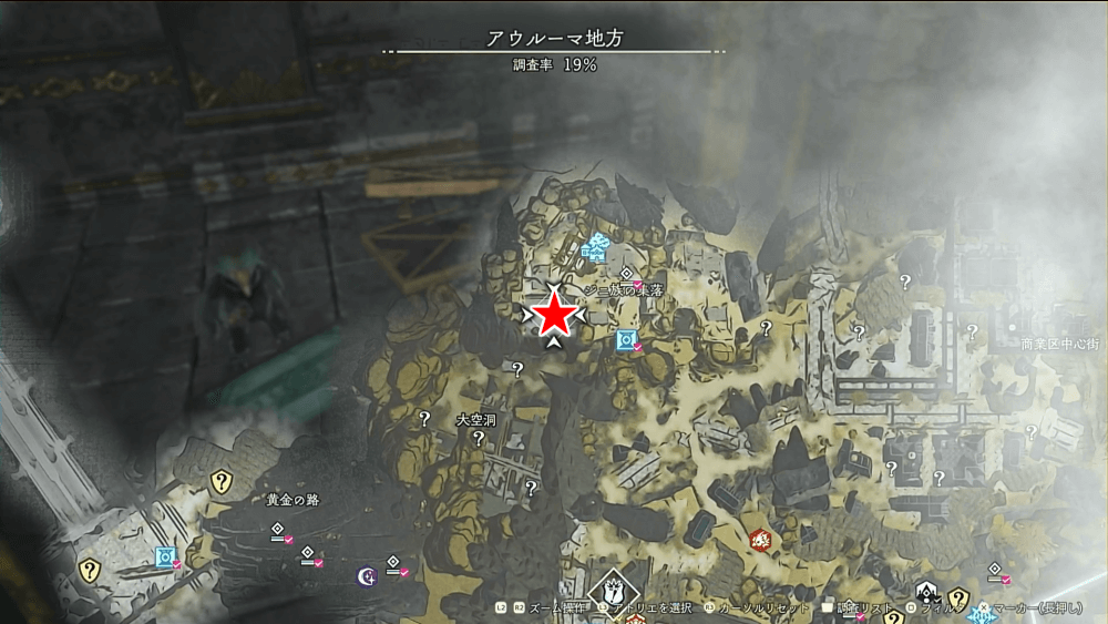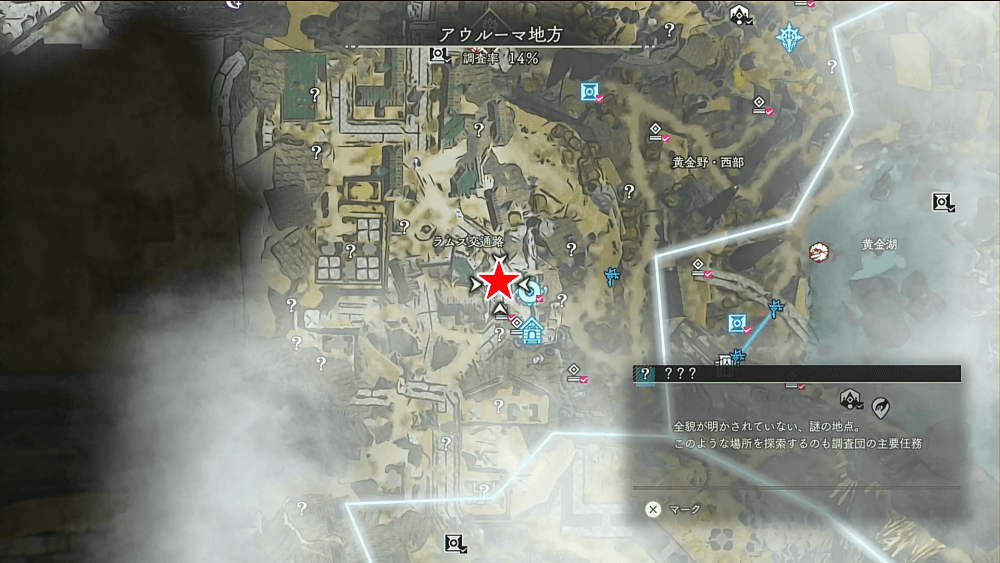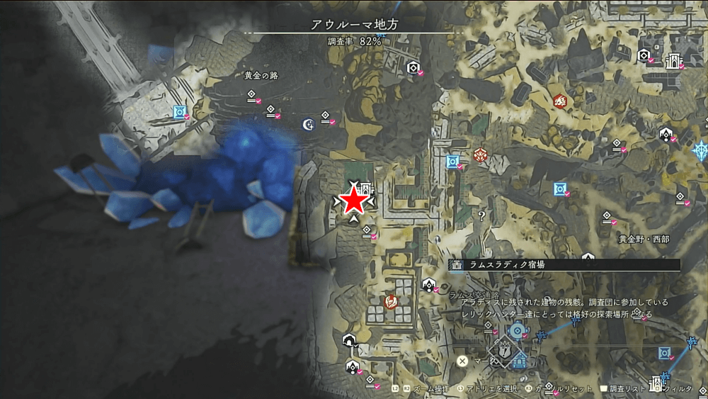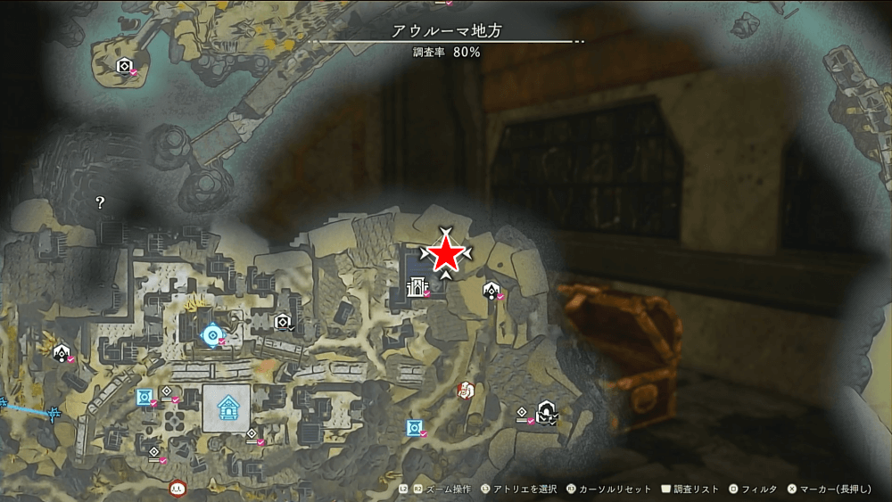 | 遺構の場所一覧と入手できる宝箱 |