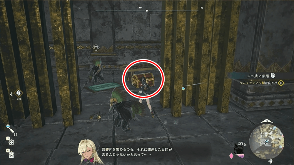 | 詳細場所 しるべから南にある廃墟、宝箱の上にある封印を解除 |