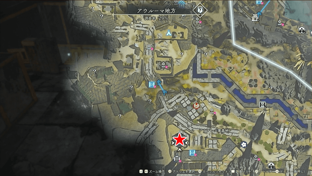 | 詳細場所 アラディス軍基地道路のファストトラベルポイントすぐ上部の建物 |