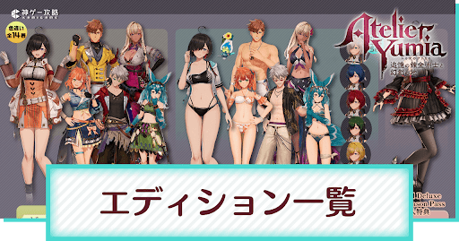 ユミアのアトリエの「エディション」について解説。エディションによる違いやエディションごとに入手できるアイテムと、価格を掲載中。エディションユミアのアトリエについて知りたいときの参考にしてください。