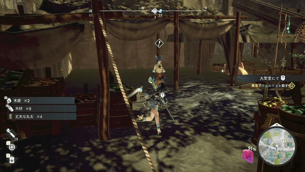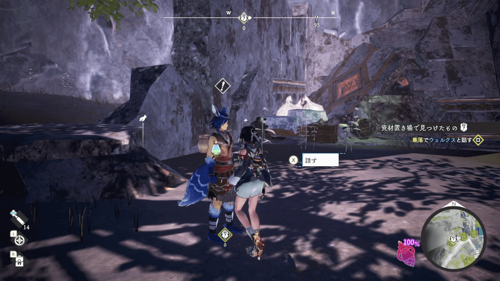 資材置き場で見つけたものは、ウェルクスの村西にいる依頼人から受注する。受注後は長距離を進んで探索が必要になるため、しっかりと準備を整えてから進もう。