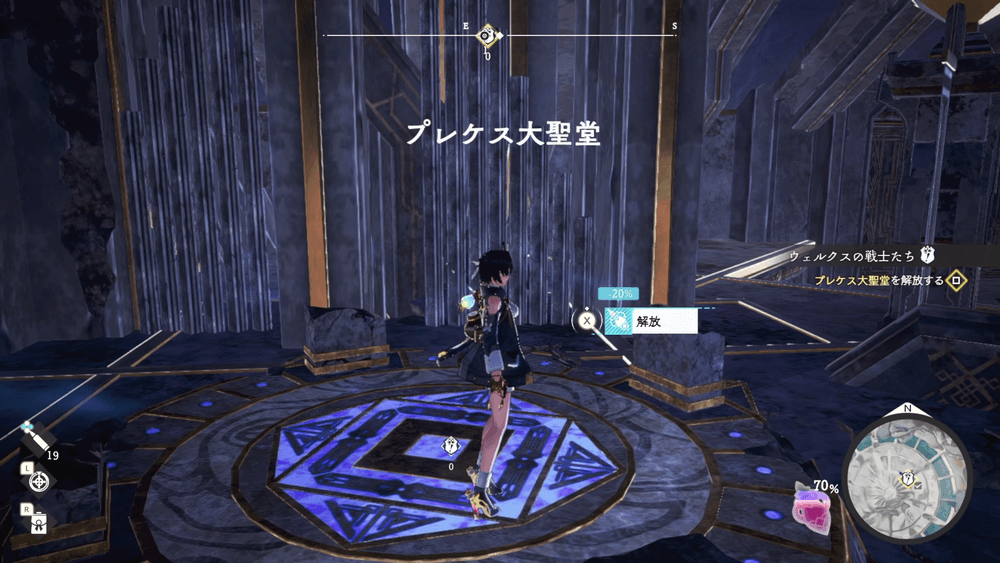 まずはプレケス大聖堂に入り、ランドマークを解放しよう。左側にある宝箱は、左側の溝にスイッチがあり、押すことで入手できる。