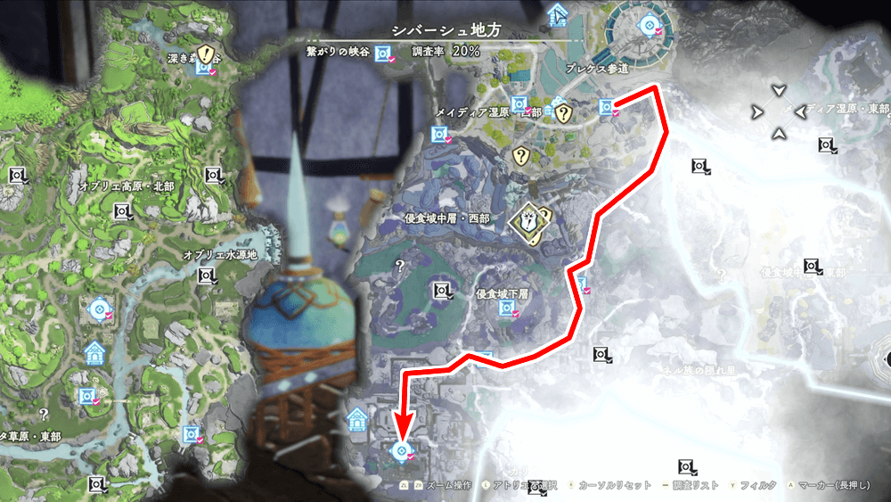 ランドマーク解放後は下の階に降り、取り替えパーツを調査しよう。調査後は拠点に戻ることになるため、やり残しの無いように周りの探索も済ませておくのがおすすめだ。