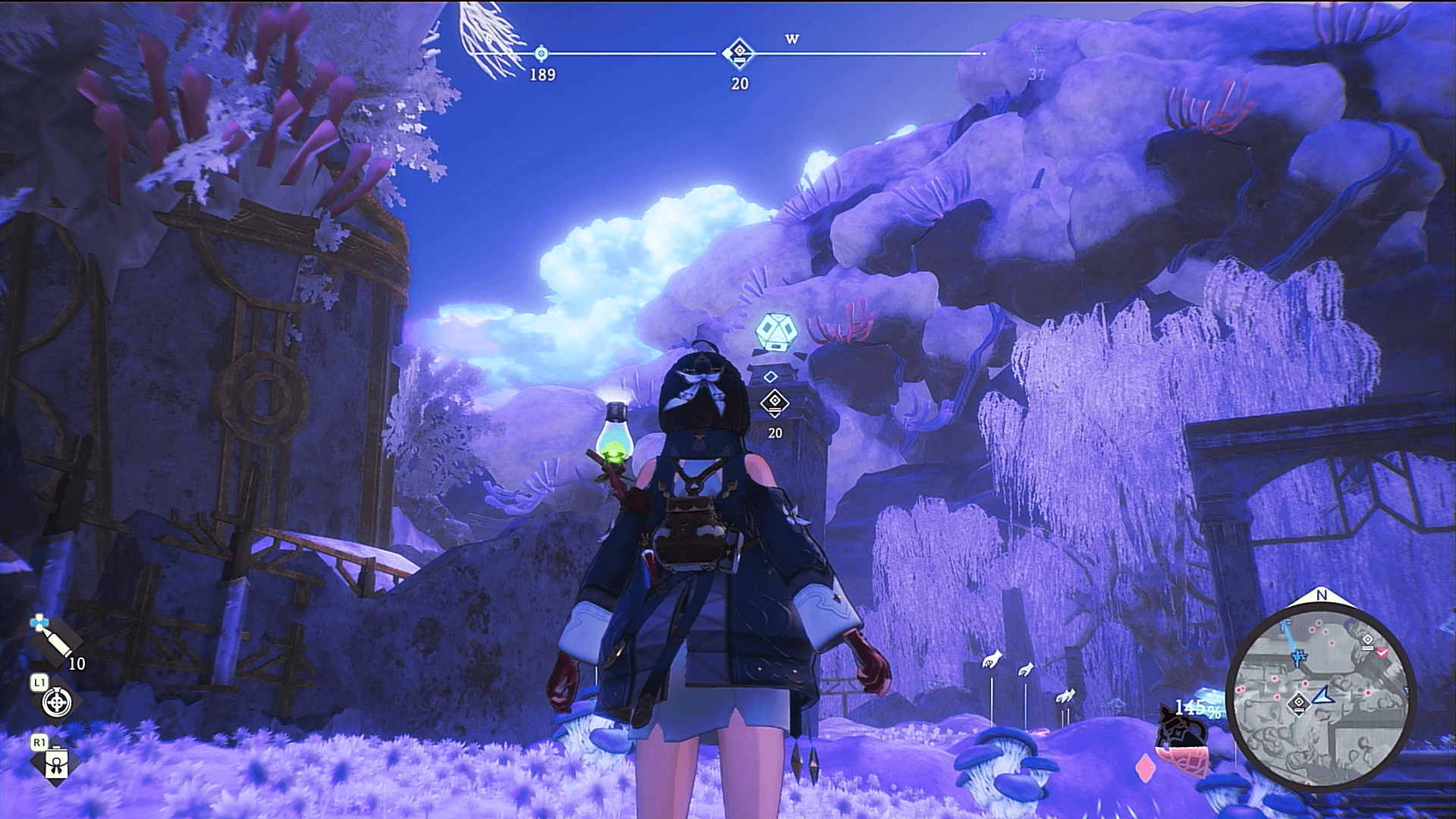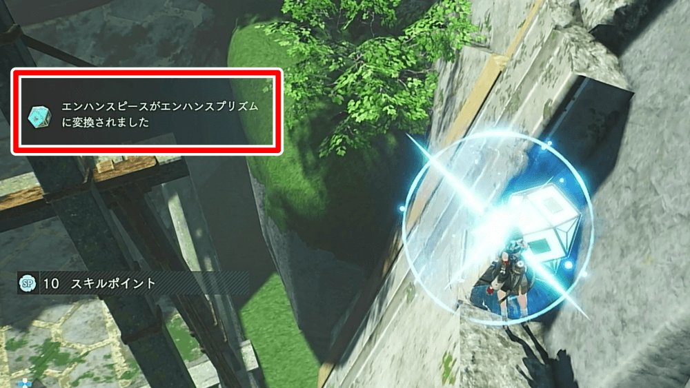 小さな祠を調べると、エンハンスピースが手に入り、一定数のエンハンスピースを集めると「エンハンスプリズム」に変換される。また、入手したエンハンスプリズムは、スキルツリーでのスキル強化や、祈念の社でエナジー上限の強化などに利用可能だ。
