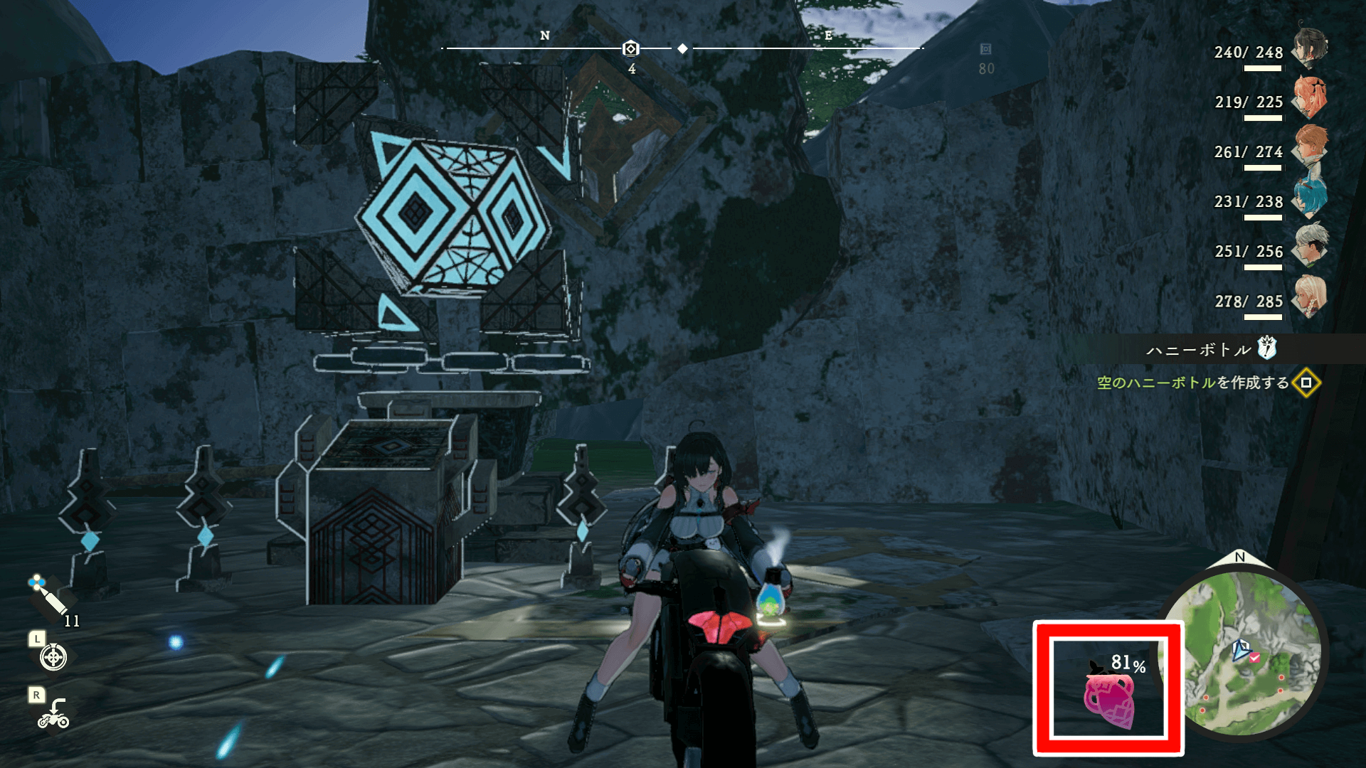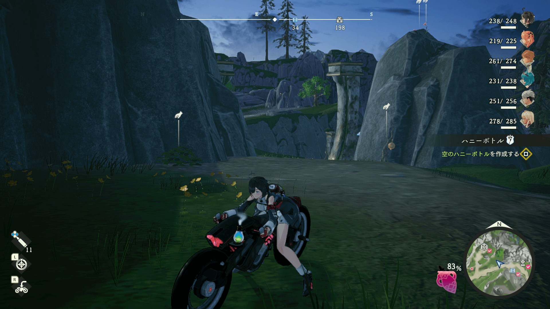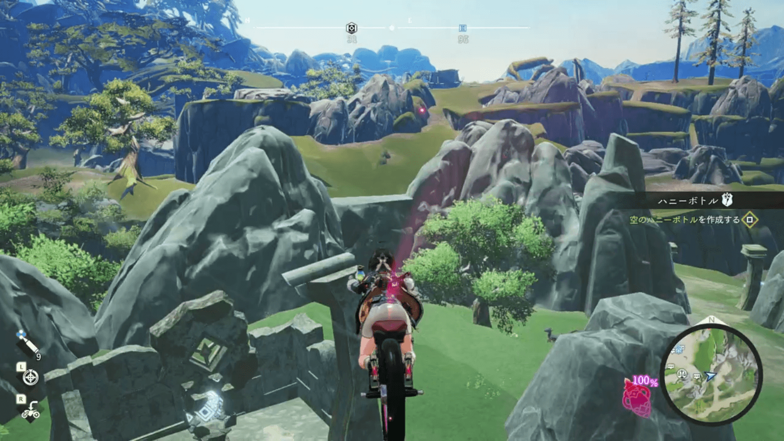 バイクは、平坦な地形で移動に使うのがおすすめだ。二段ジャンプが必須な岩が多い道や壁がある道は、バイクでジャンプしても乗り越えられない。強化するとバイクでも壁ジャンプができるようになるが、ユミアの二段ジャンプほどの性能は無いので、乗り越えられないときはバイクを降りよう。