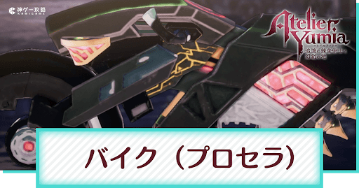 ユミアのアトリエの「バイク(プロセラ)」について解説。バイクの解放条件や強化方法、便利な使い方と仕様についても掲載中。バイク(プロセラ)ユミアのアトリエで探索するときの参考にしてください。