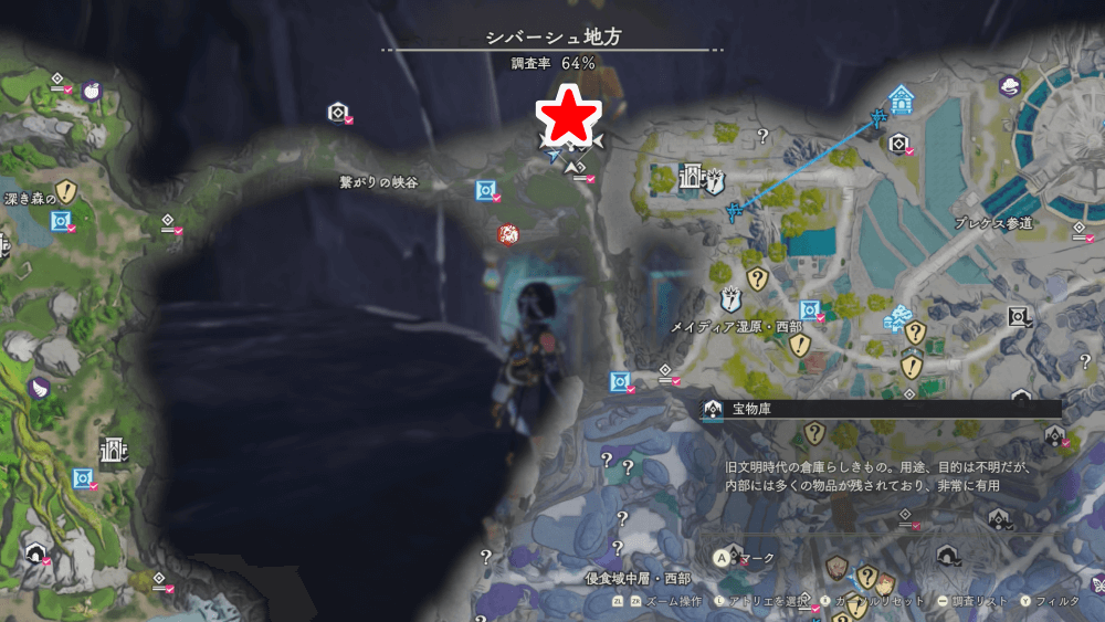 | 遺構の場所一覧と入手できる宝箱 |