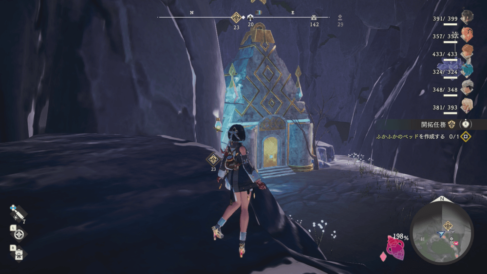 ふかふかのベッドの設計図は、シバーシュ地方のネル族の隠れ里から西の宝物庫で入手できる。宝物庫を開けるのに「宝物庫の鍵」が必要になるので、各地の遺構などを探索して鍵を集めておこう。