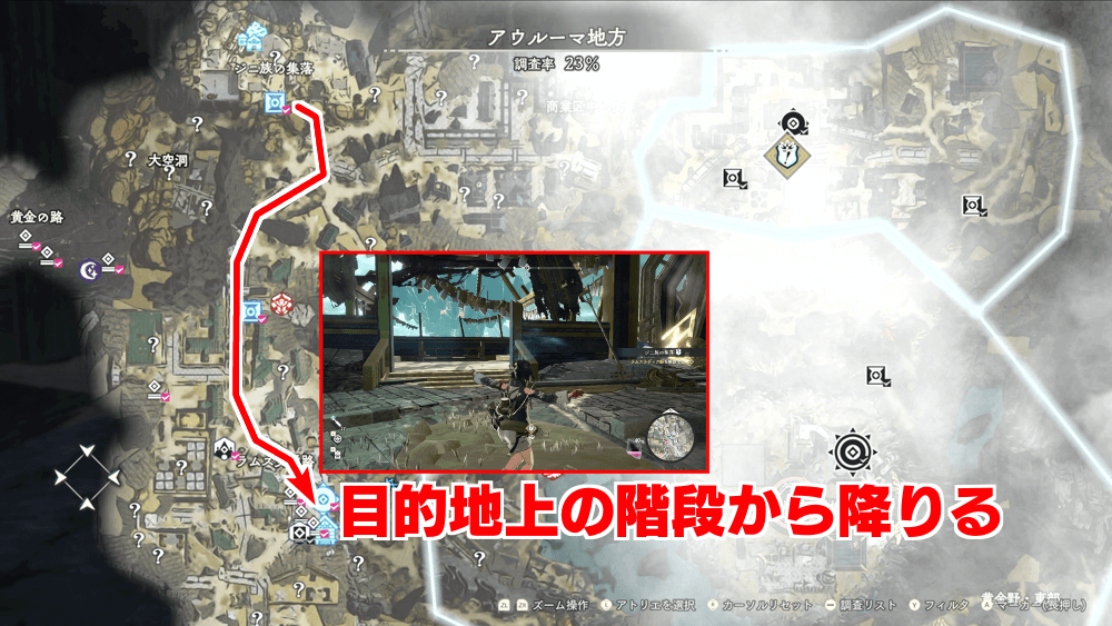 ランドマーク解放が終わったら、地上階まで戻ろう。イベント発生後はアウルーマ拠点へ戻ることになるため、素材や宝箱は先に回収を済ませておくと良い。