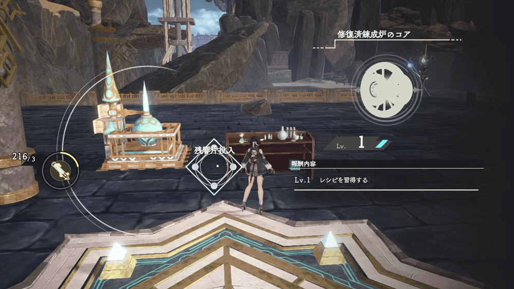コアを作成したら錬成炉の修復を済ませよう。修復後はクエストが進み、施設の探索が可能になる。