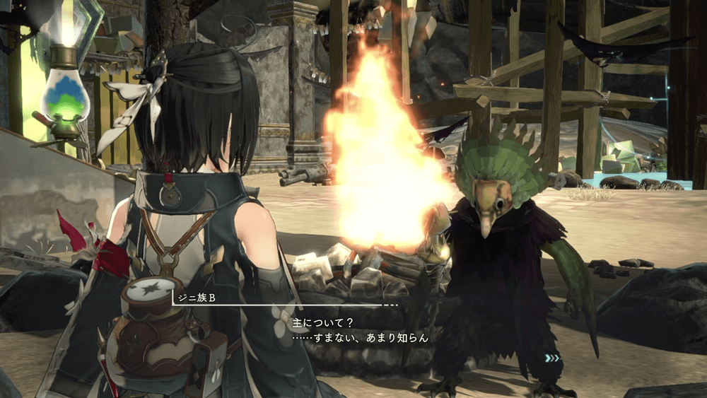 まずは集落内にいるジニ族3人から話を聞こう。聞いた後は目的地が更新され、ストーリーが進む。