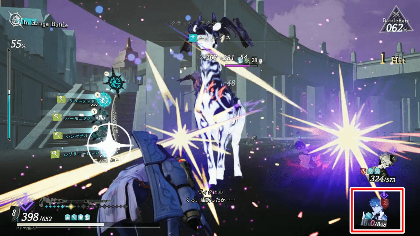アドベント中にもう一度アドベント発動ボタンを押すと、アドベントが解除される代わりに必殺技を使える。必殺技は、操作しているキャラが発動するので、別キャラで発動させたい場合はキャラを切り替えておこう。