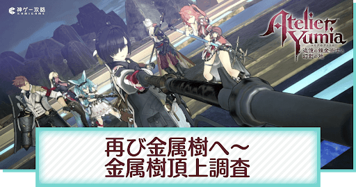 ユミアのアトリエの「再び金属樹へ〜金属樹頂上調査」の攻略について紹介。各クエストの進め方や同時にこなすべき寄り道要素、クエストによる分岐点、作成するべき装備について解説。ユミアのアトリエのストーリーを進める際の参考にどうぞ。