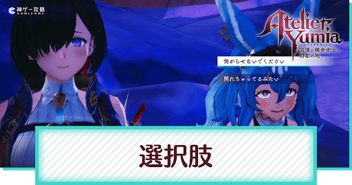 ユミアのアトリエの「選択肢」について解説。選択肢による違いやエンディング分岐の有無についても掲載中。選択肢ユミアのアトリエでどれを選べばいいかわからないときの参考にしてください。