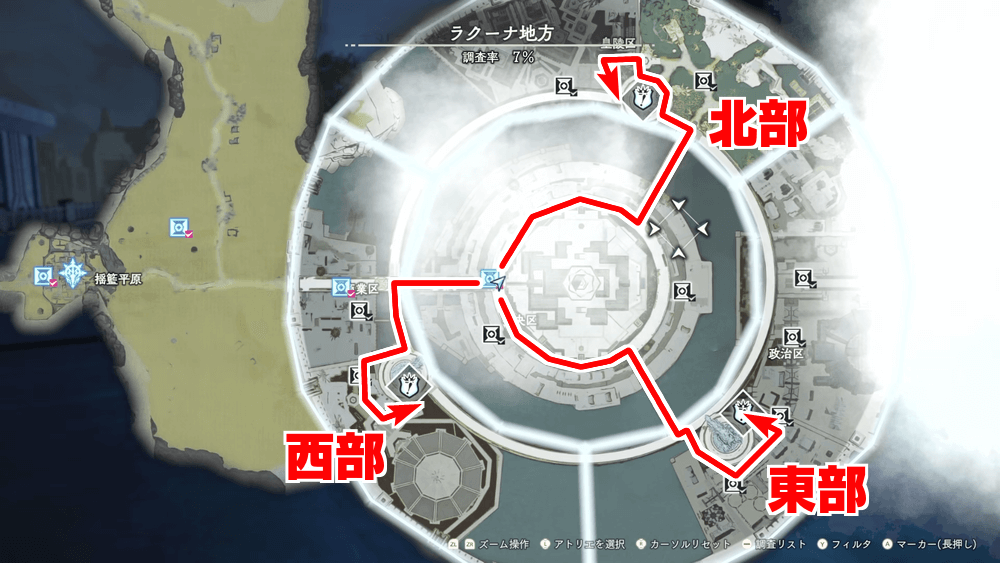 政治区制御塔の攻略チャート(東部)