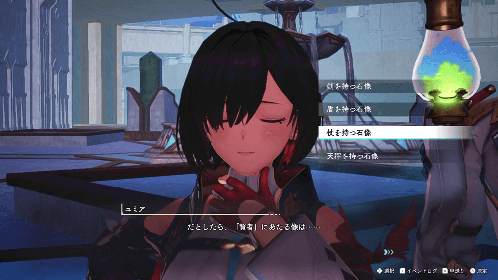 情報が揃ったら評議院へ戻り「杖を持つ石像」を選択して裏口を見つけよう。以後は敵も出現しないため、アイテムの補給などは不要だ。