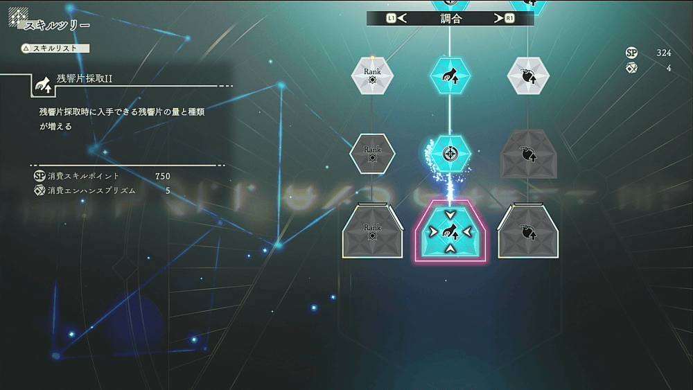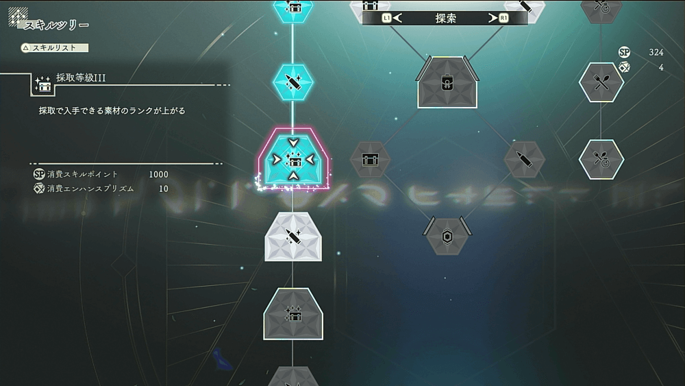 残響片が効率的に集められるようになったら、次は採取関連のスキルを伸ばすのがおすすめ。採取物のランクを上げれば、残響片でのレシピ強化と合わせて序盤のうちから強力な装備の作成が行いやすくなる。