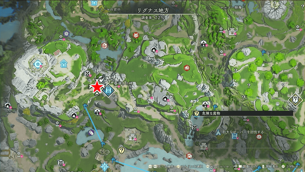 ビーバー 岩獣 ファストトラベルポイントのすぐ側に出現する2体の魔物を倒して、ランダムクエストをクリアしよう。クリア後に再度「秘された花園」にファストトラベルすると、魔物が復活しているので、スキルポイントが貯まるまで何度も周回してポイントを稼ぐと良い。