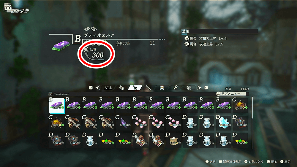 | ▼最低品質での調合 | ★★★ | ★☆☆ |
