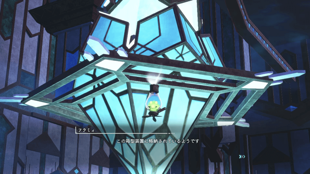 伝送の間を超えたら、エレベーターで2階に登り、中央の継承の間へ向かおう。移動の邪魔になっている障壁は本筋のルートには関わっていないので、宝箱がいらないなら解除する必要はない。