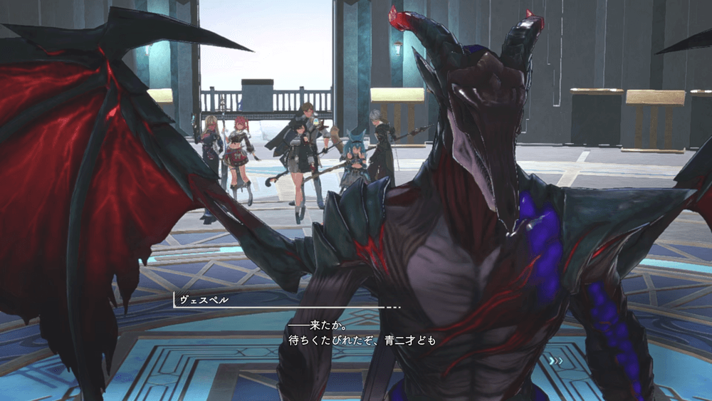 入口付近まで戻って上階へ進み、イベントを見た後ヴェスペルとの戦闘になる。リリーボレアと比べると危険度は低く、同じ装備でも十分倒せる程度の性能だ。