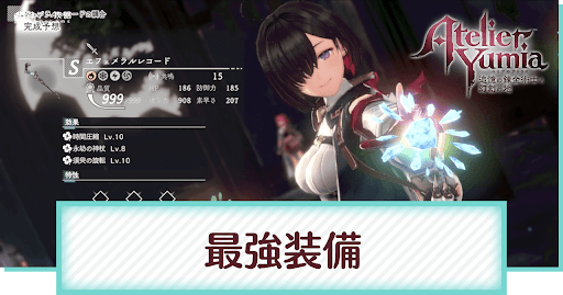 ユミアのアトリエの「最強装備」について紹介。最強装備の作り方や手順、作成後に強化できる要素、習得おすすめスキル、設置するべき設備についても掲載しています。ユミアのアトリエをプレイする際の参考にどうぞ。