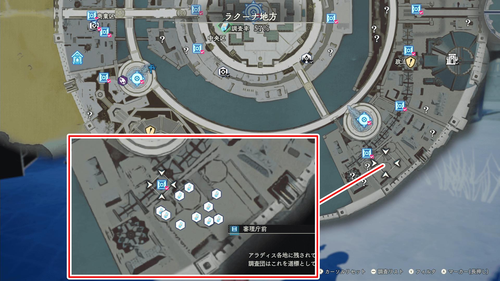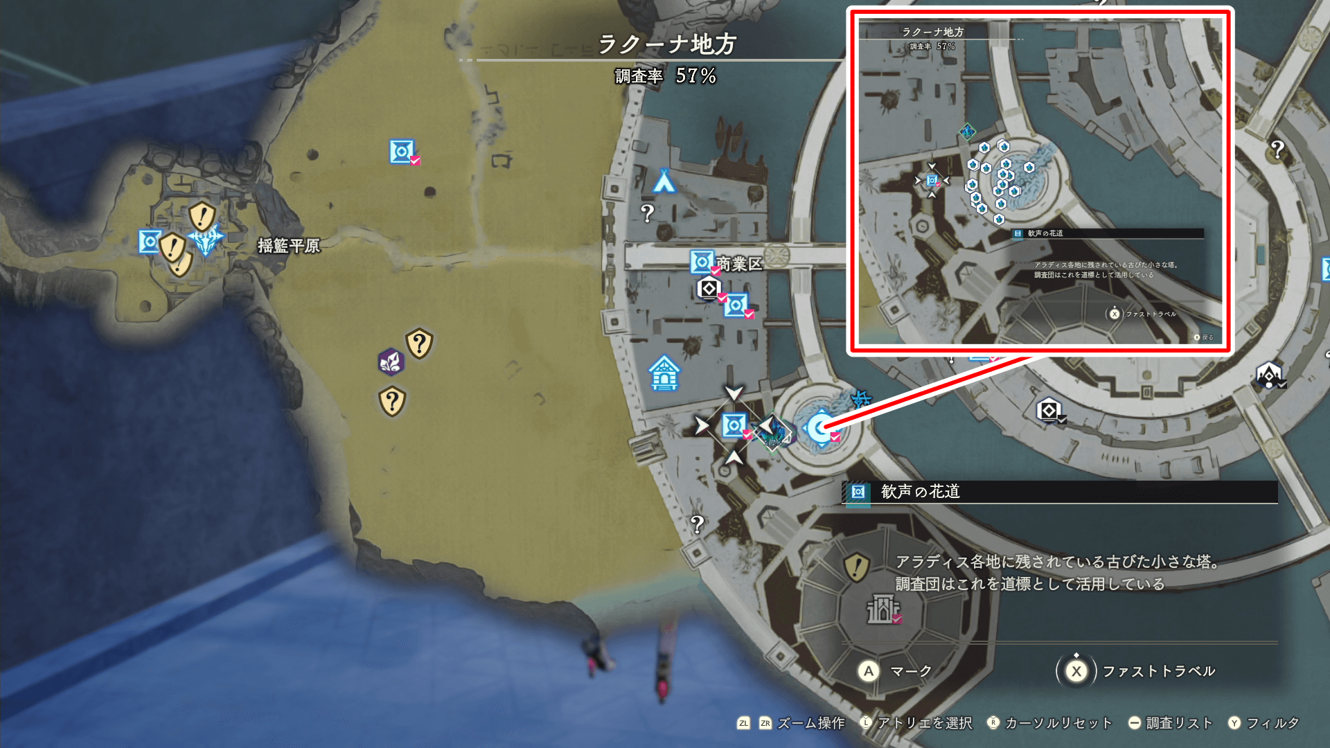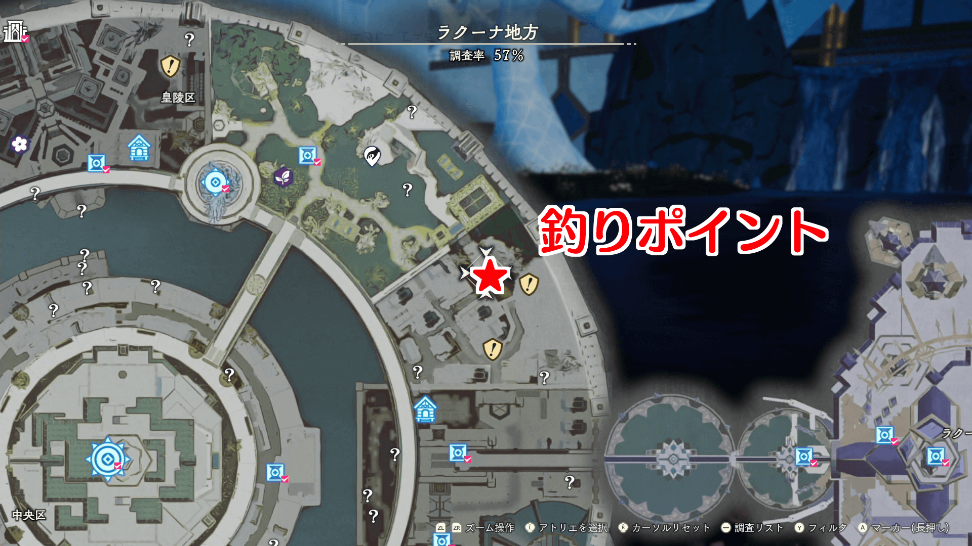 杠の解放素材である「ドラゴンフィッシュ」は、ラクーナ地方の釣りポイントで入手できる。釣りポイントは、場所が変わると釣れる魚が全く異なるため、画像の場所を参考に釣りをしよう。