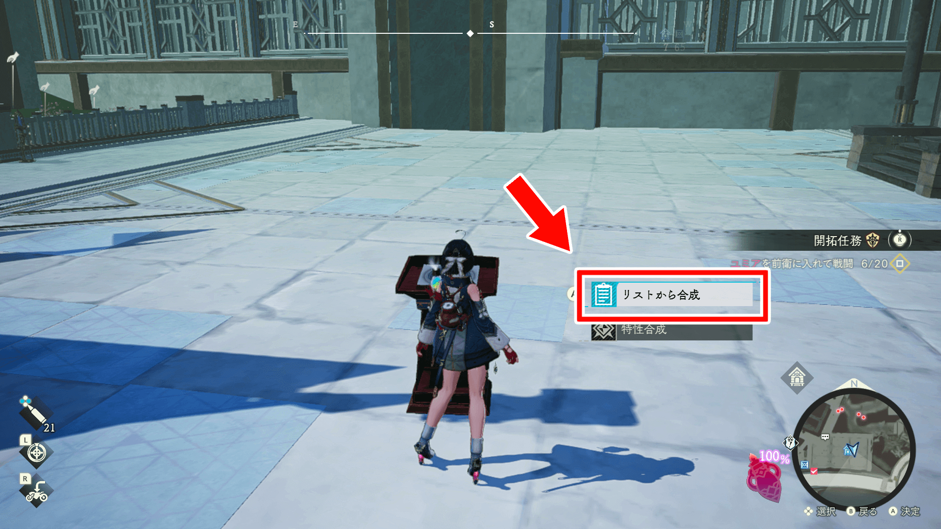 結晶合成台を選択したら、「リストから合成」を選ぼう。リストに乗っていない特性結晶は作れないので、自分で素材を選ぶよりリストから合成で作るのが楽でおすすめだ。