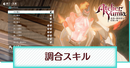 ユミアのアトリエの「調合スキル」について解説。調合スキルの獲得方法とおすすめの組み合わせについても掲載中。調合スキルユミアのアトリエで調合するときの参考にしてください。