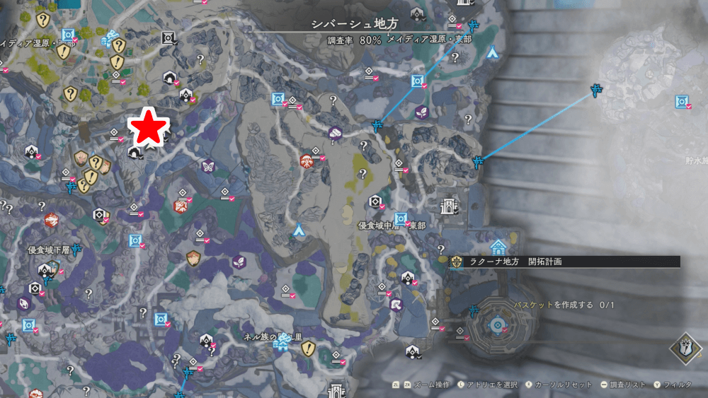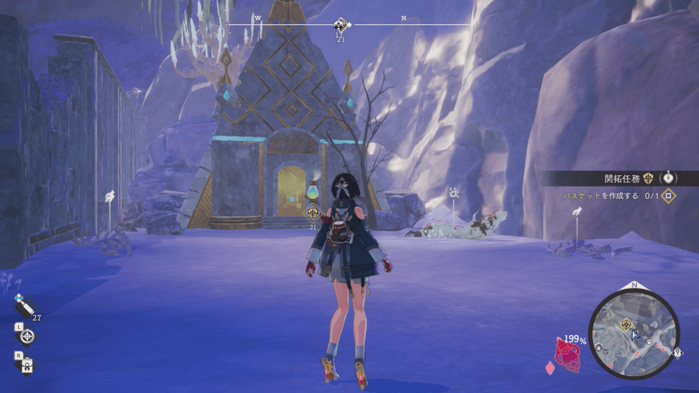 バスケットは、シバーシュ調査拠点北東の宝物庫から入手できる。宝物庫を開けるのに「宝物庫の鍵」が必要になるので、各地の遺構などを探索して鍵を集めておこう。