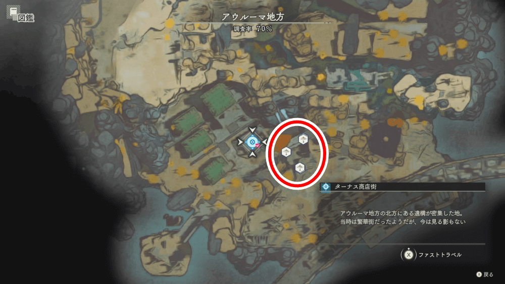 スワードパラソルは、アウルーマ地方のターナス地区にある滝付近で採取できる。天井に生えているので、通常弾で撃ち落として採取しよう。