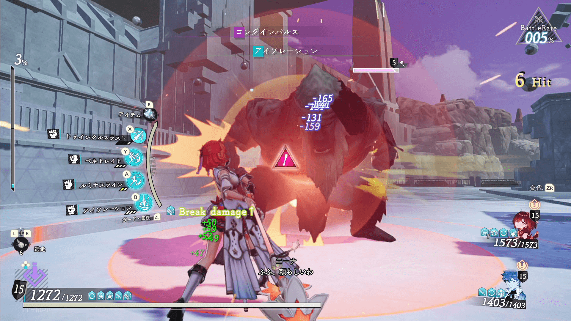 アイラは、敵をブレイクするほど自己強化できる。全能力が上昇するため、ボス戦などの強敵とたたかうときによりアイラの強みを発揮しやすい。