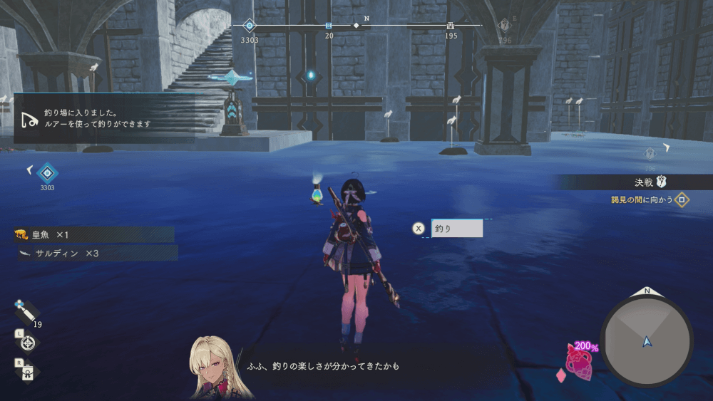 皇魚は、ラクーナ地方の地下通路近くの釣り場で釣れる。地下通路はストーリー進行で行けるようになるため、未到達の場合は先にストーリーを進めよう。また釣りをするには「ルアー」が必要になるので、持っていない場合はリグナス地方の開拓率を40%にして「ルアー」を入手しよう。