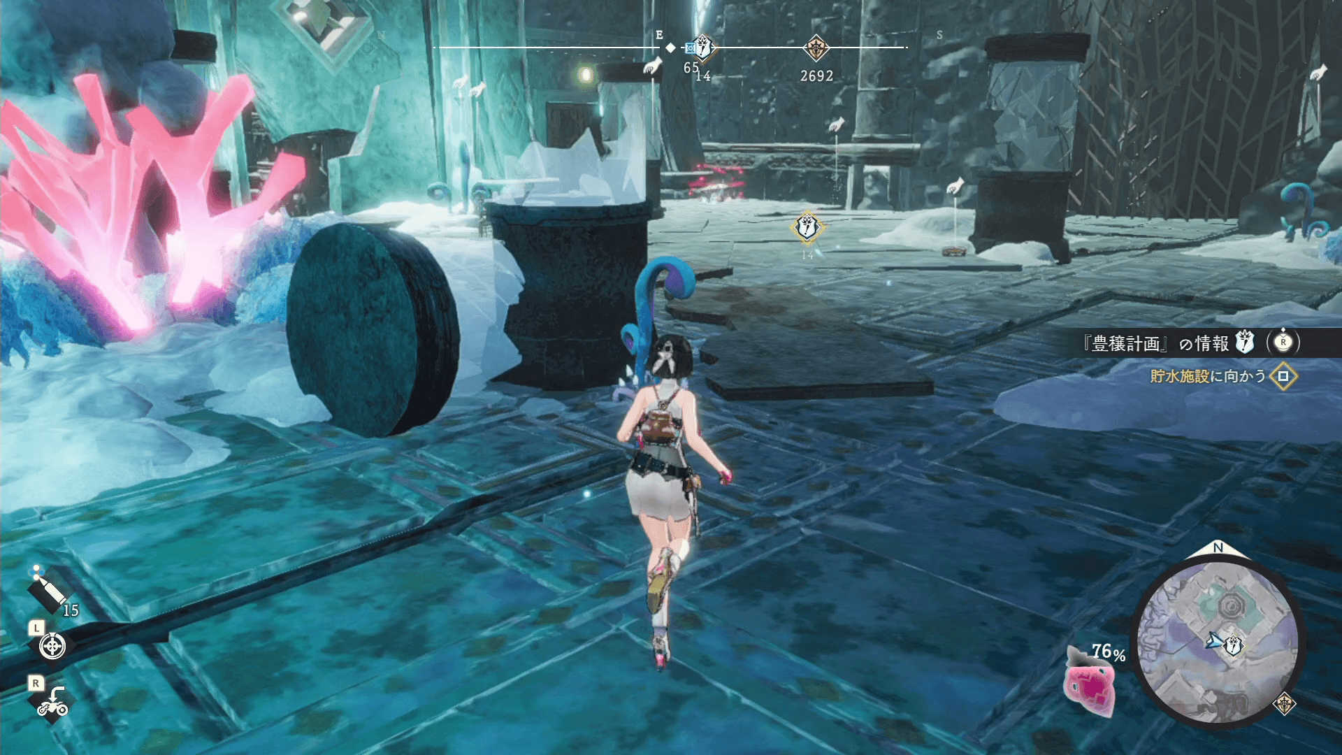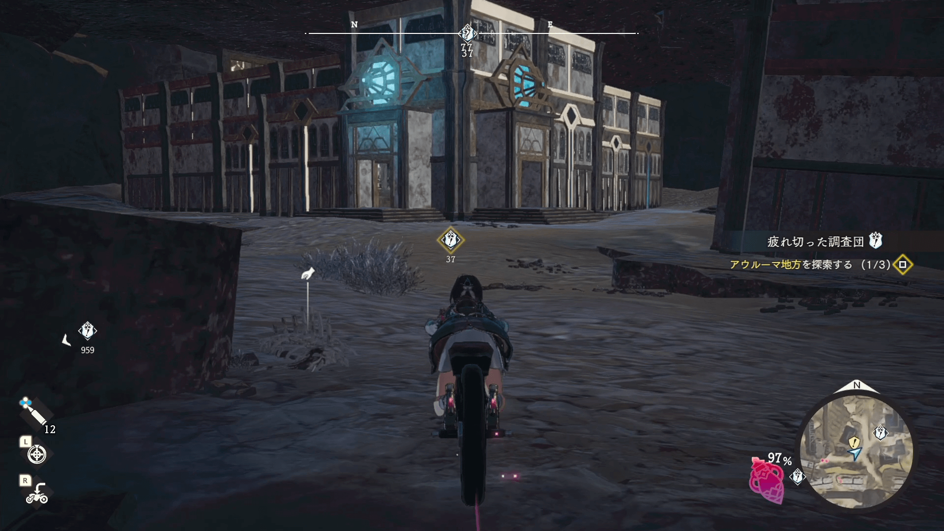 イベントを視聴したら、近くにある施設の修理を行う。修理には「リペアツール・機械」が2個必要になるため、略式調合で作成しよう。修理が完了したら、施設をスキャンするとストーリーが進む。