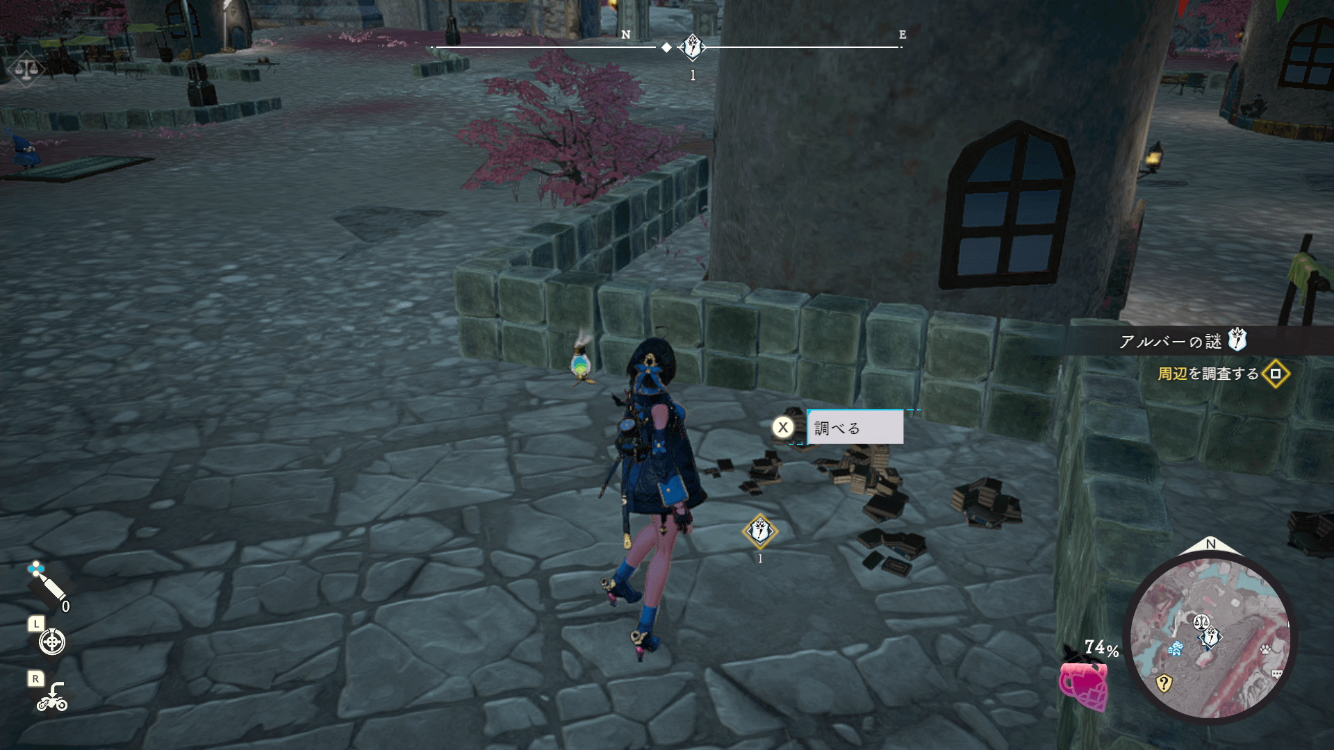 「古い本を持っているアルバーに会う」を選択すると、周辺の調査が必要になる。アルバーすぐちかくの場所を調べればクリアになるため、最も難易度が引い。