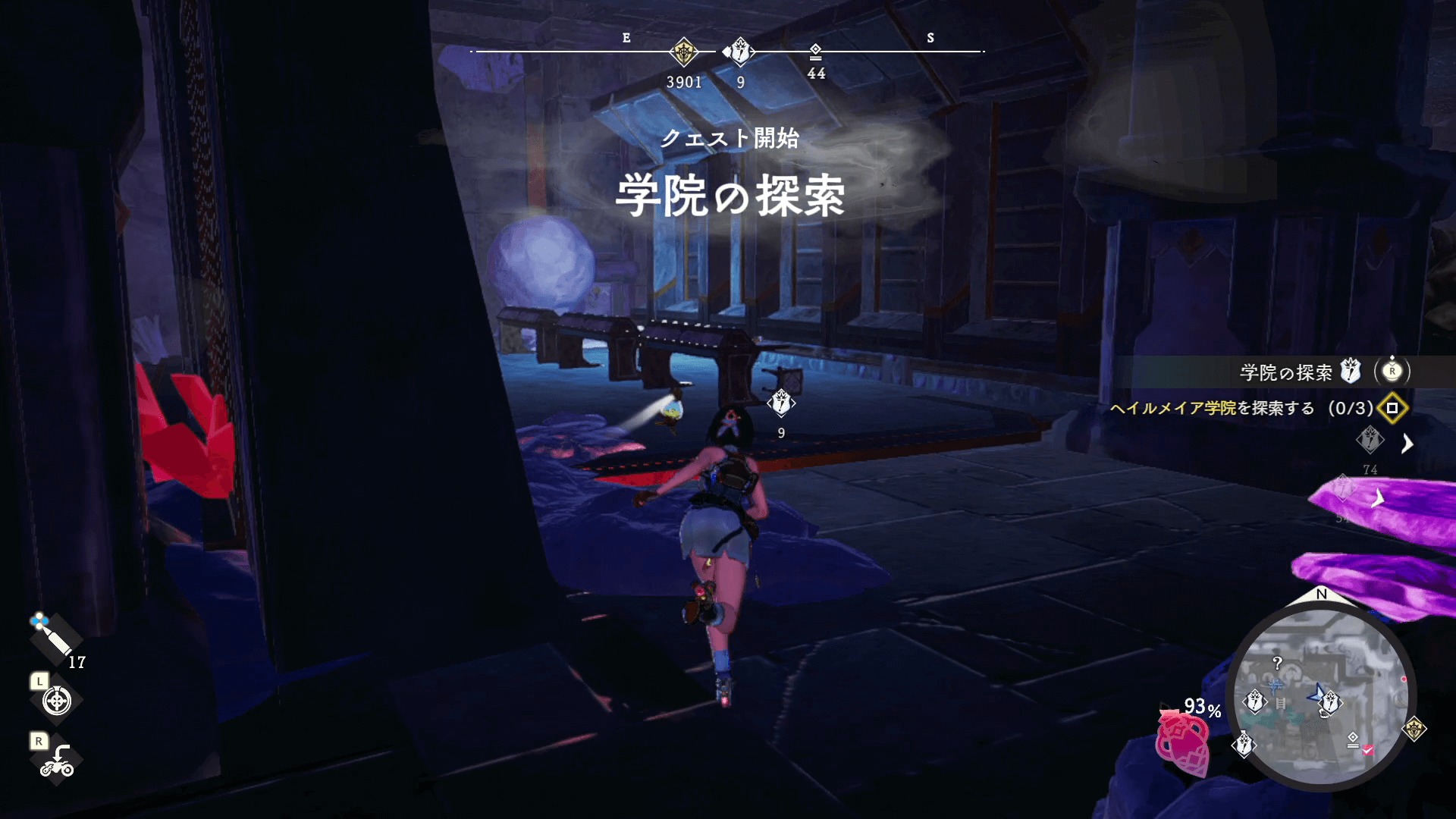 ヘイルメイア学院にたどり着いたら、周辺を調査しよう。クエストアイコンに従って3か所を調査したら、続けて2か所の調査が発生する。調査が完了すると「ウェルクスの集落」クリアだ。