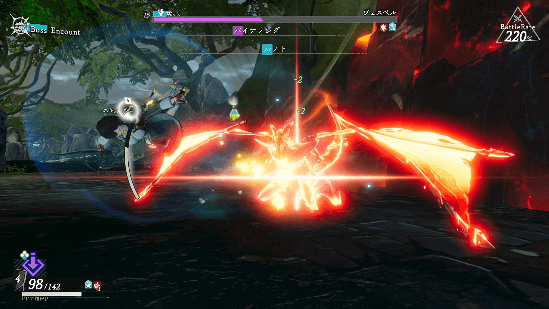 ヴェスペルの攻撃は、単体で終わらず連続で繰り出される。一度のジャスト回避では避けきれない場合が多いため、ジャスト回避後も連続で回避するのがおすすめ。