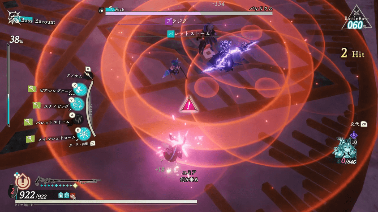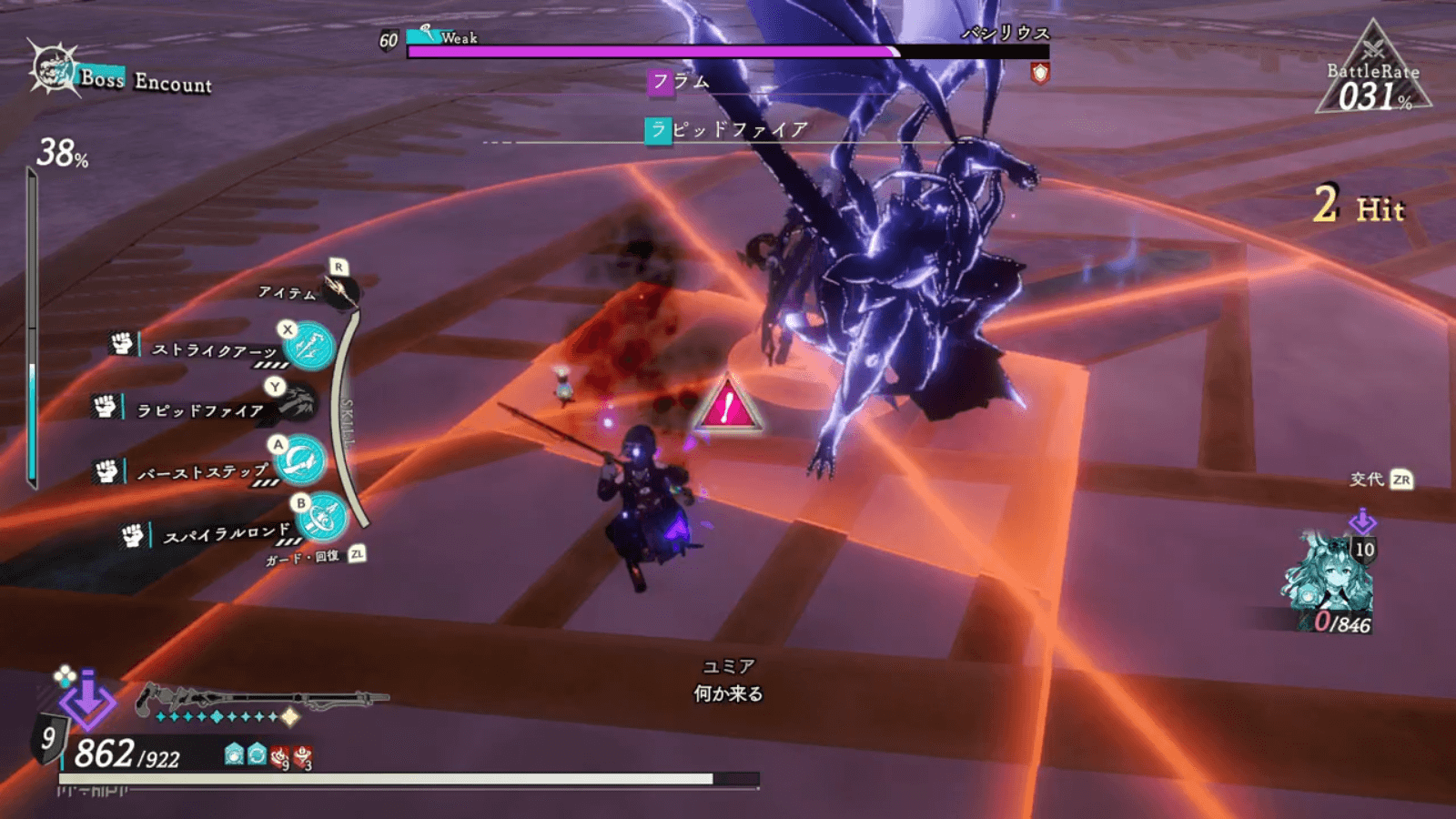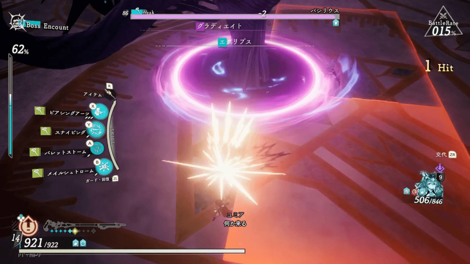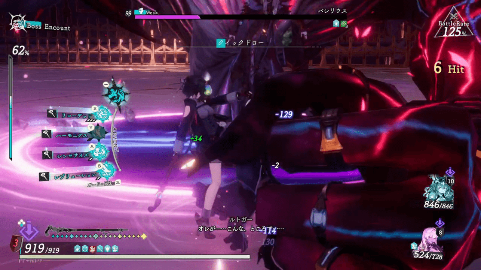 バシリウス第二形態以降は、なるべく操作キャラを背面に移動させながら戦おう。背面以外に全体攻撃を行う技や、、前方に行う攻撃を回避しやすくなる。