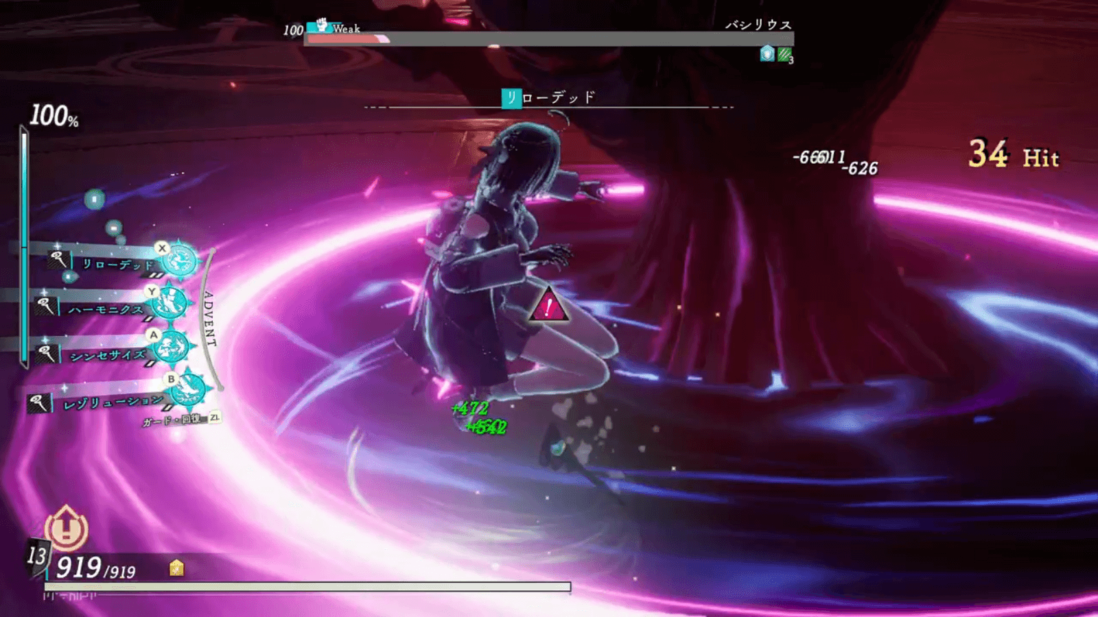バシリウス第二形態では、アドベントが溜まったら使っておくのがおすすめだ。アドベント中は攻撃力が大きく上がるので、削りが早くなる。