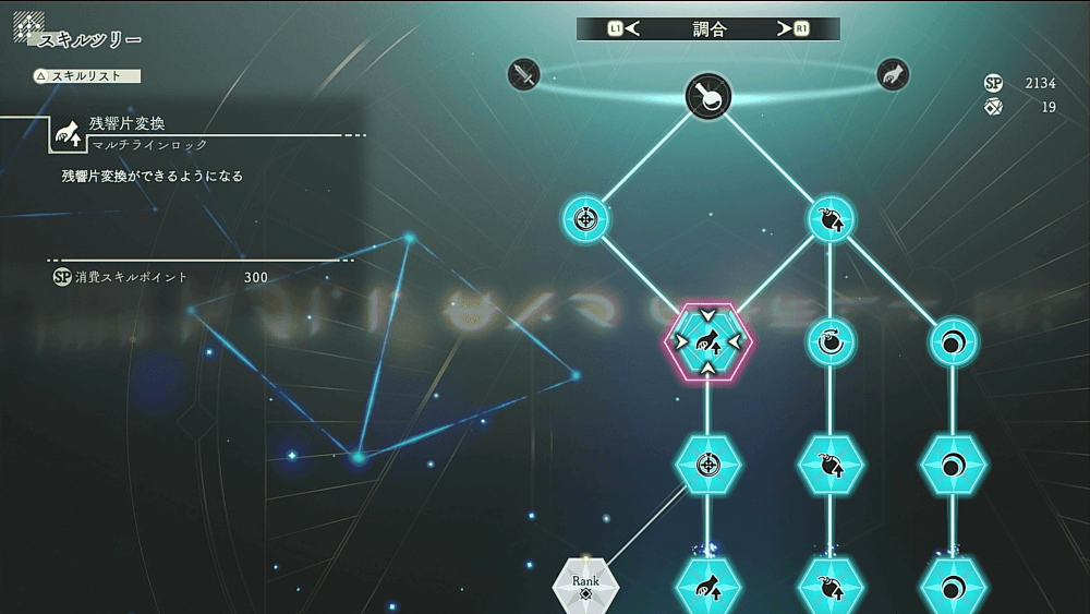 1スキルツリーで残響片変換を習得する