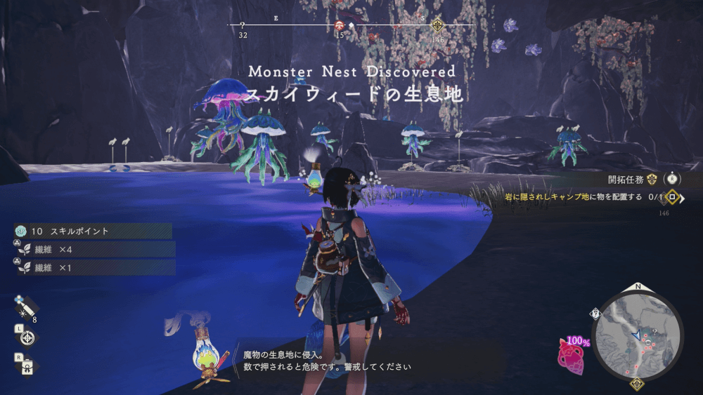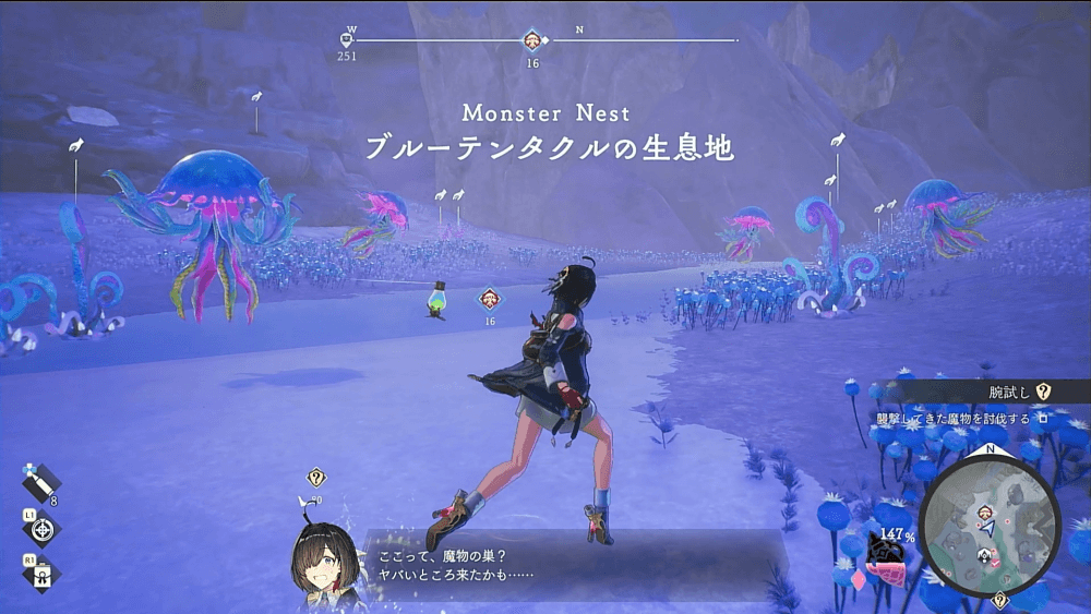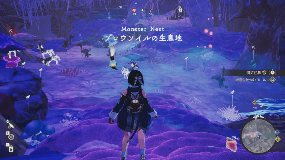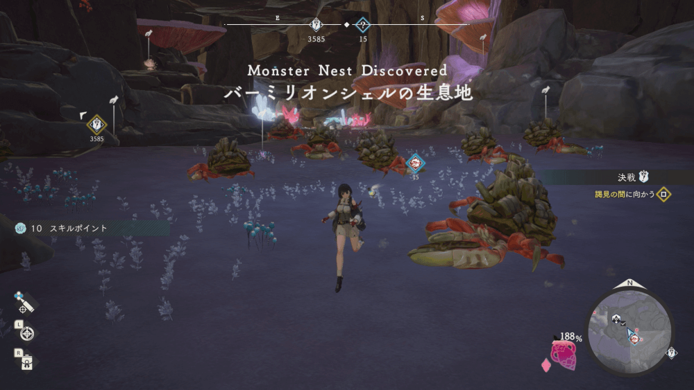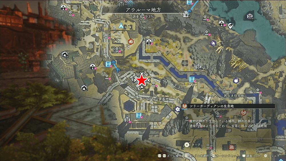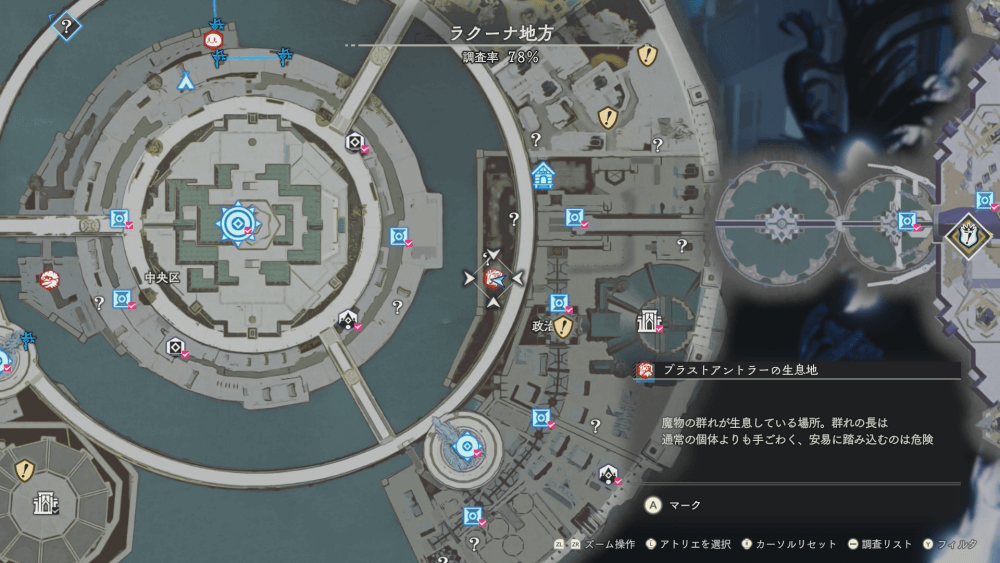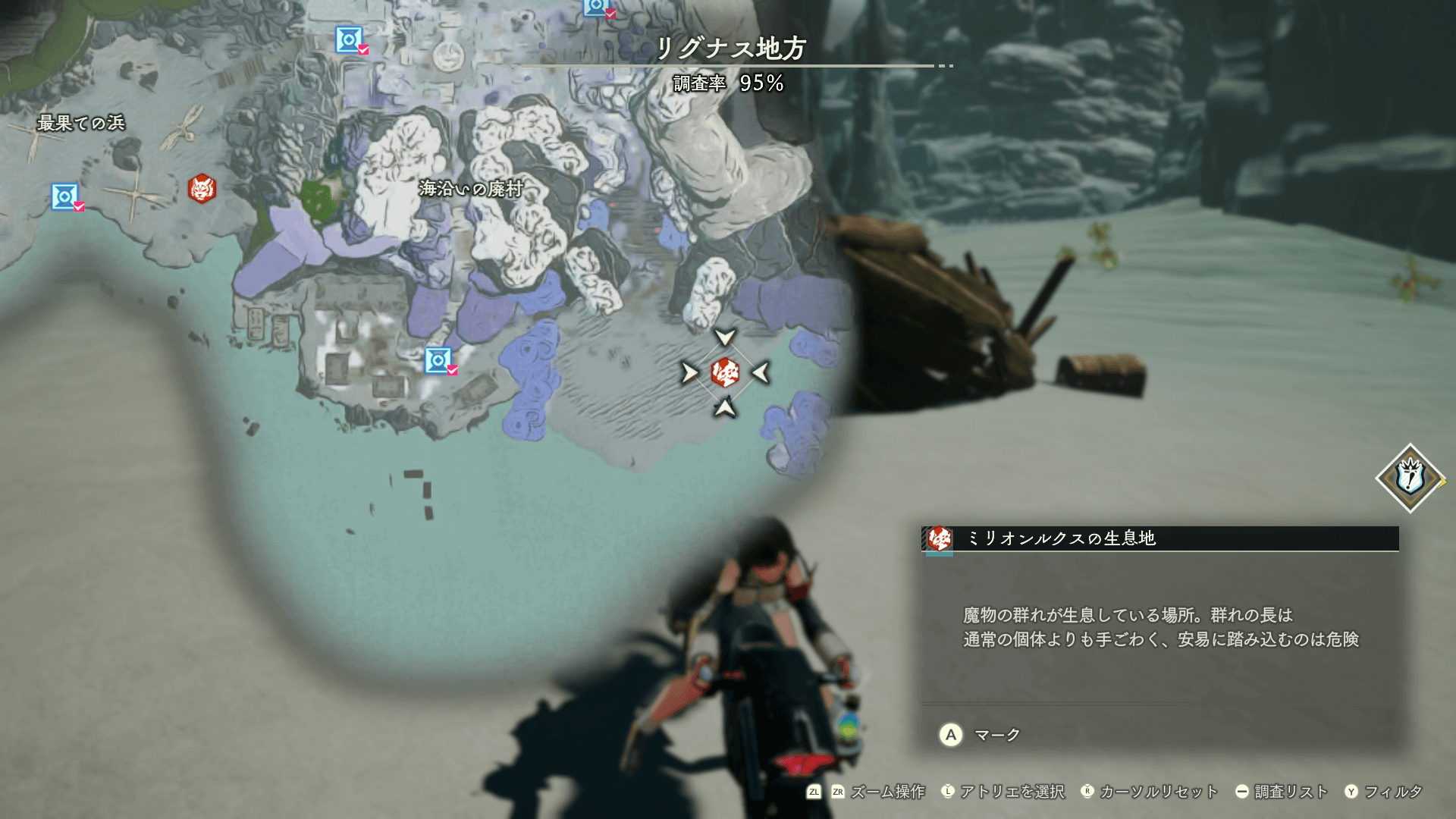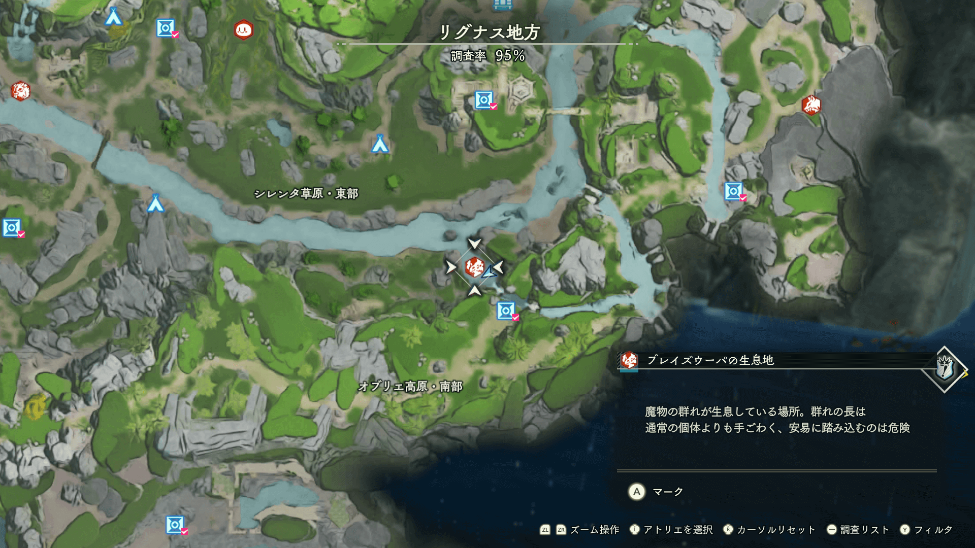 魔物の生息地は、未発見の状態だと「?」で表示されているが、発見するとマップに表示される。マップの調査率にも関わるので、調査率100%を目指す場合はすべて発見しておく必要がある。