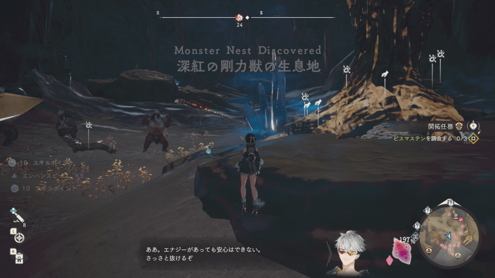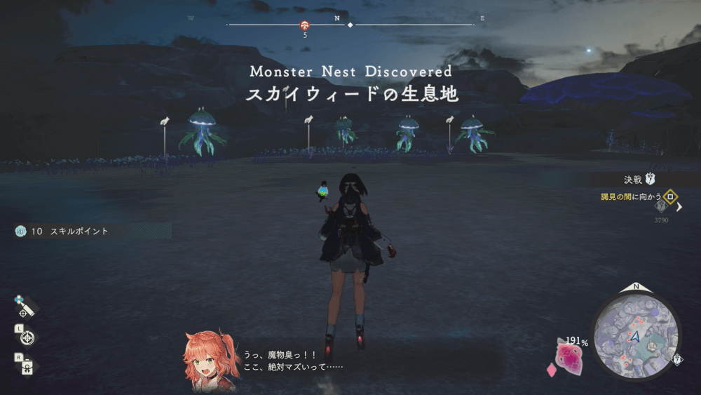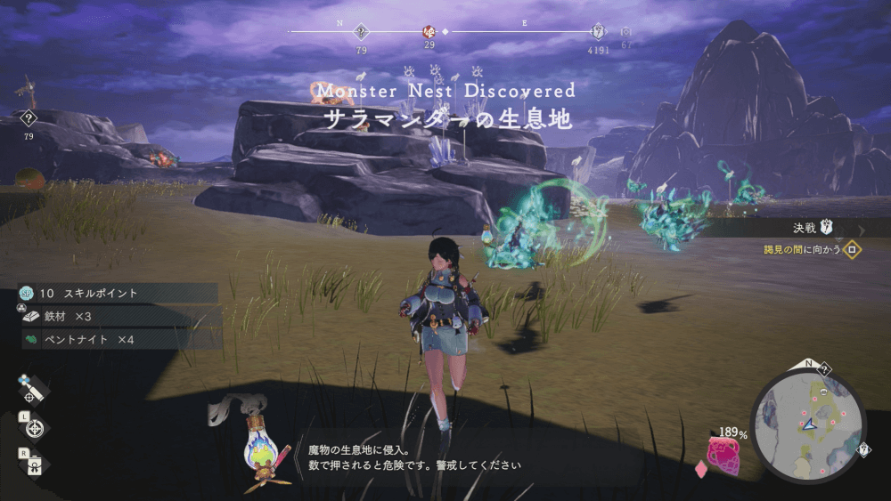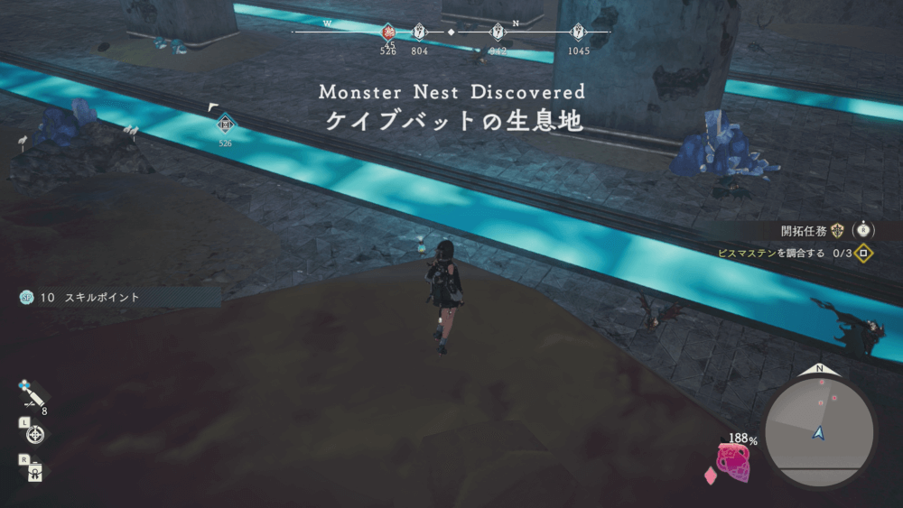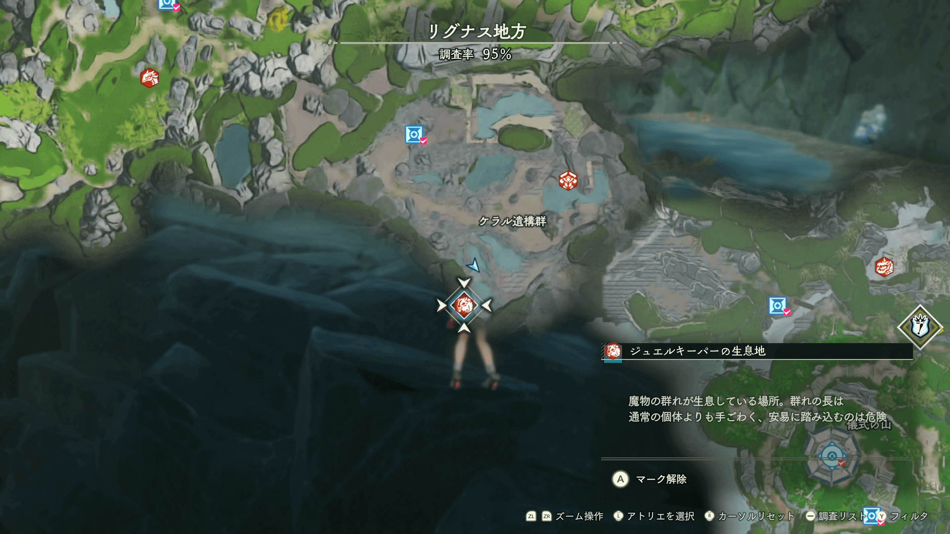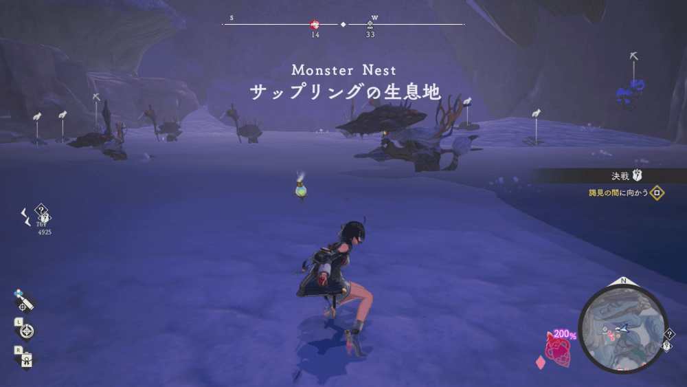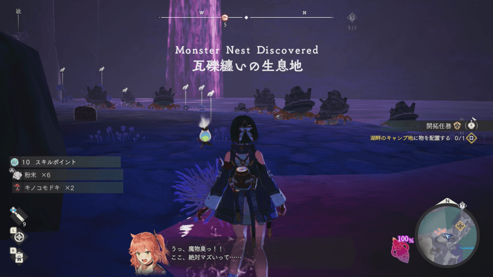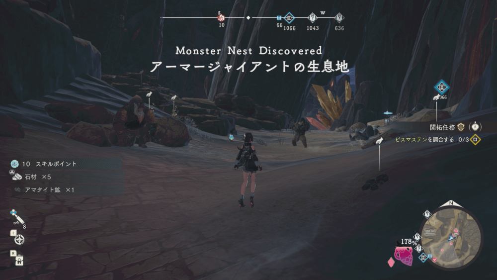 魔物の生息地は、未発見の状態だと「?」で表示されているが、発見するとマップに表示される。マップの調査率にも関わるので、調査率100%を目指す場合はすべて発見しておく必要がある。