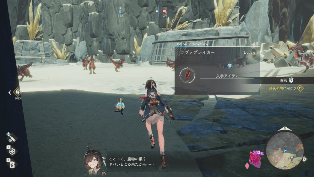 魔物の生息地には、同種族の強敵がいる場合もある。強敵を撃破すると固有の素材をドロップするほか、珍しい大型の魔物が出現するため、魔物図鑑埋めにもおすすめだ。