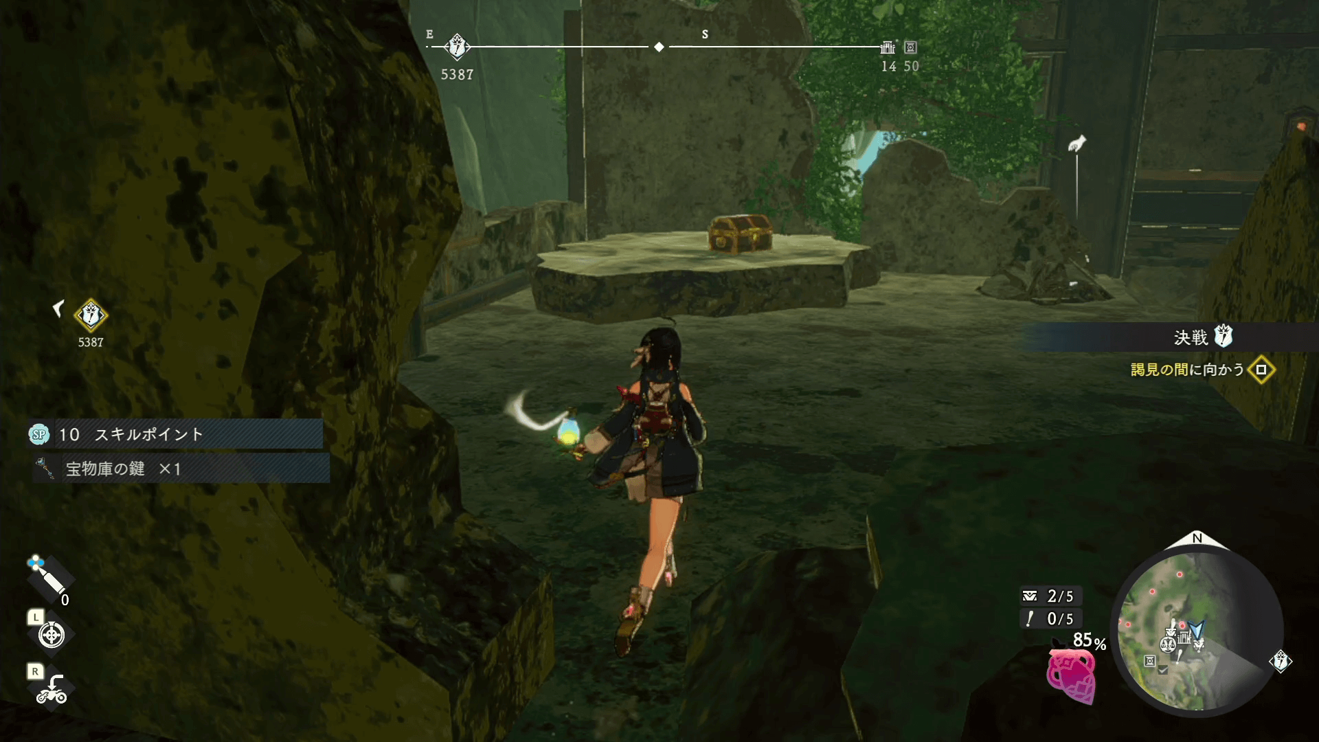 1階の宝箱を回収したら、2階に向かおう。壁のスイッチを起動して全ての宝箱と遺宝を回収したらクリアだ。