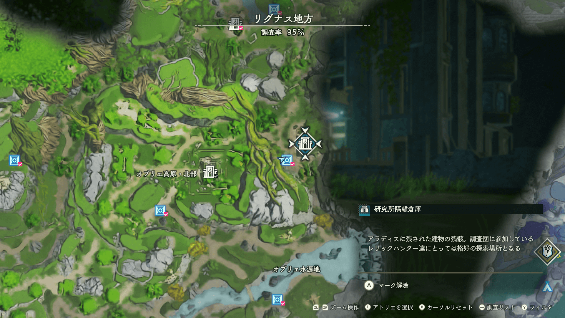 研究所隔離倉庫は、マルゴー樹海の東端にある。研究所隔離倉庫への道は複雑ではないため、近場にファストトラベルすれば簡単にたどり着ける。